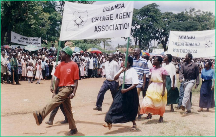During the local council elections in 2002, a total of 587 change agents and UCAA Working Partners contested the elections and 70% (414) of them were elected at all levels from village committees to district councils. Men and women were roughly equally represented. In addition, a total of 627 change agents and UCAA Working Partners assisted as plling officers, civic educators, campaign managers, etc. During the elections for members of parliament and during the presidential elections in 2001/2002 change agents were also actively involved.